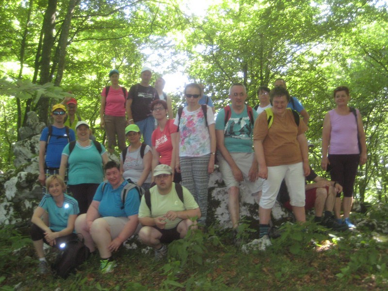 Za naše društvo je koordinatorica Marica, ki že v začetku leta pripravi okvirni program za celo leto, nato pa mesečno s strokovno službo VDC-ja predlaga smer pohoda, ki je primerna za vsako skupino in vremenu primerno. Za petek 14. junija so vremenoslovci napovedali do 36 stopinj in kot rečeno sta Marica in Melita izbrali pot na Ostri vrh pri Rdečem Kalu. Pot pelje večino po senci in nima večjih vzponov ,kot nalašč za tako vremensko napoved. Na izhodišču v vasi Rdeči Kal se nas je zbralo dvaindvajset, od tega 16 uporabnikov, trije strokovni sodelavci iz VDC-ja, ena spremljevalka in dve izkušeni planinki PD Krka Novo mesto. Ob prijetnem kramljanju smo malo pred lovskim domom zagledali oboro ,v njen pa divje prašiče z mladički. Žal je bil za poziranje pripravljen samo eden, še malo naprej pa smo zagledali še škotsko govedo z mladiči in tudi ti niso bili pripravljeni pozirati. Pri lovski koči smo si vzeli čas za počitek in malico, nato pa smo se povzpeli na 523 m visok Ostri vrh, ki je druga najvišja vzpetina v Trebanjski občini. Sledilo je fotografiranje in spust do lovskega doma, kjer smo doživeli presenečenje-nagrado, vsak je dobil sladoled, ki ga je pripeljal oče naše Melite. Zapustili smo hladno senco in se po isti poti vračali na izhodišče. Že smo mislili, da je pohoda konec, pa nas je Melita povabila še na sto metrski podaljšek do njene mame, ki nam je postregla s sokom in kavo.