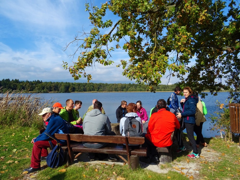 ⭕️ Na sliki večja skupina pohodnikov posluša zanimivosti o ribnikih, foro arhiv Pin/OPP