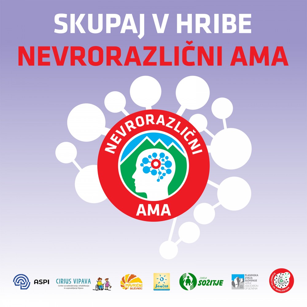 Skupaj v hribe - Nevrorazlični AMA. AMA je kratica sestavljena iz prvih črk: Avtizem, Motnja v duševnem razvoju, ADHD, ki niso prepreke za polno, aktivno in družabno doživljanje gora. Akcija ne ukaluplja posameznikov, dopušča, da so vključeni v skupino in na svoj način ter s svojim tempom dosežejo cilj. Skupaj v hribe se osredotoča na osebo, ne na primanjkljaje, invalidnost/PP, na to kar posameznik zmore sam ali s pomočjo. Inkluzijski pohodi so priložnost za različne, ki s svojo drugačnostjo pogumno stopajo v družbo.