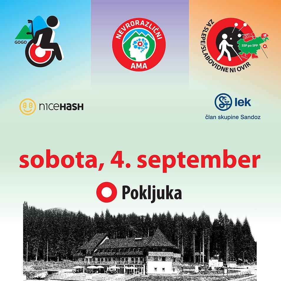 | Vabljeni na inkluzijski pohod, 4. septembra 2021, na Pokljuko. Akcije Gibalno ovirani gore osvajajo (GOGO) , Skupaj v hribe Nevrorazličini AMA (avtizem, motnja v duševnem razvoju, ADHD) in Slepi in slabovidni planinci se med seboj povezujejo. Na poti nam bodo delali družbo prostovoljci. Izberete lahko med dvema različnima potema z istim ciljem - Športni center Triglav Pokljuka.