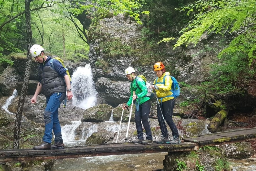 torek, 10. maj 2022 ob 00:00, ogledov: 2060 Tudi Pekel smo preživeli| Objavil(a): Jurček NOWAKK | | Pot in odločen korak sta nas tokrat vodila v Sotesko Pekel pri Borovnici, kjer smo se razdelili v dve skupini. Nekateri so se odločili za lažjo varianto, medtem, ko sem si sama željna adrenalina in novih izzivov izbrala zahtevnejšo pot. Spremljali so nas naši stalni spremljevalci - prostovoljci in vodniki planinskega društva Borovnica, ki so nam povedali o zanimivostih Borovnice in tudi v verzih predstavili Sotesko Pekel. | »Peklenski ogenj tu ne peče, nebeški le se širi hlad. Po slapih bistra voda teče, po grlih naših - trte sad.« Fran Papler (1910)