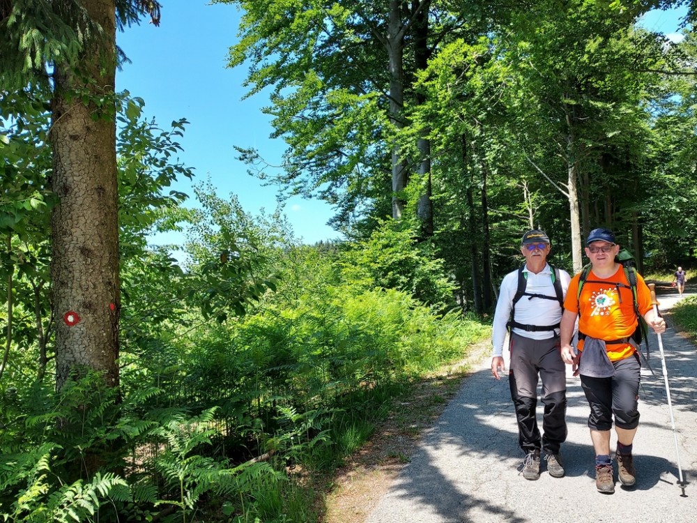 V soboto 18. junija smo se slepi in slabovidni udeležili pohoda na Svetino, kjer smo se na vrhu srečali še z ostalimi invalidi in spremljevalci. Kot na vsakem inkluzijskem pohodu, tudi na Svetino in Ermanovec, se razdelimo v dve skupini. Prva skupina se odpravi peš po malo bolj zahtevni poti, druga v kateri so gibalno ovirani pa po cesti. Sedaj je že navada, da tudi slepi in slabovidni na teh pohodih primemo za gurtne in pomagamo gibalnooviranim na vozičkih z vlečenjem priti do cilja.