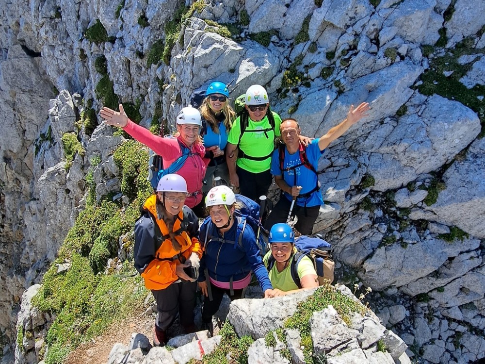Na sliki skupina planincev med spustim med skalami, arhiv inPlainec