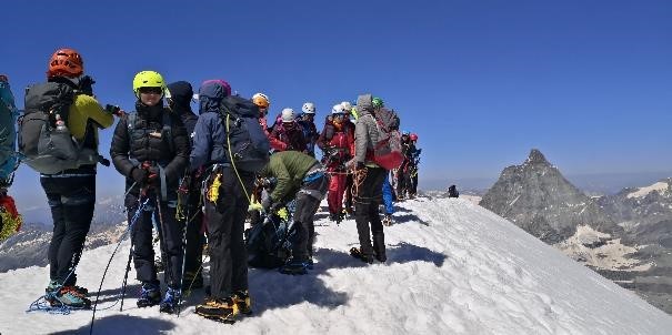 Planinci z invalidnostmi še višje od Triglava – osvojili so 4.164 metrov visoki Breithorn. 19 planincev invalidov - slepih, slabovidnih, gluhih, gibalno oviranih, nevrorazličnih in invalidov, ki se soočajo z dolotrajnimi boleznimi - je v ponedeljek, 29. julija 2024, stopilo korak višje na poti k svojim sanja. Povzpeli so se na 4.164 metrov visoki zahodni vrh Breithorna, ki se dviga proti nebu na meji med Švico in Italijo, v osrednjem alpskem masivu. Dan kasneje, v torek, 30. julija 2024, so se iz koče Torino podali na ledenik z razgledom na Mont Blanc in markanten Velikanov zob.